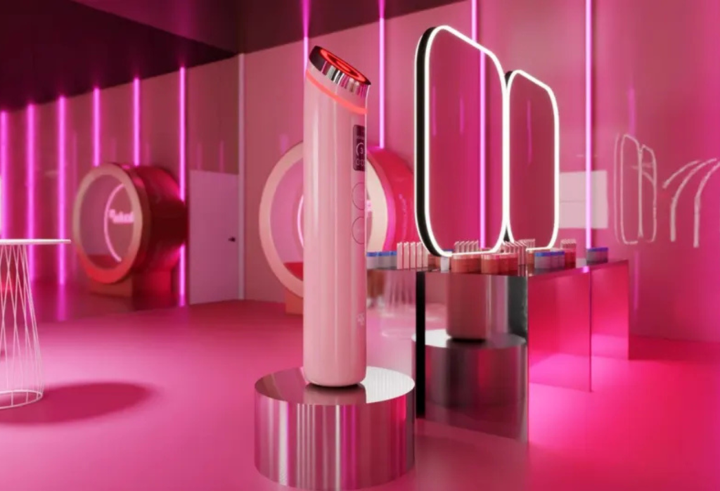 Namesto klasične promocije je Rhode stavil na igrive, vizualno zelo čiste izkušnje, kot so igra pokanja balonov in avtomat z mehansko roko za lovljenje nagrad ter prostor za hitre lepotne popravke z najbolj prepoznavnimi izdelki znamke.
