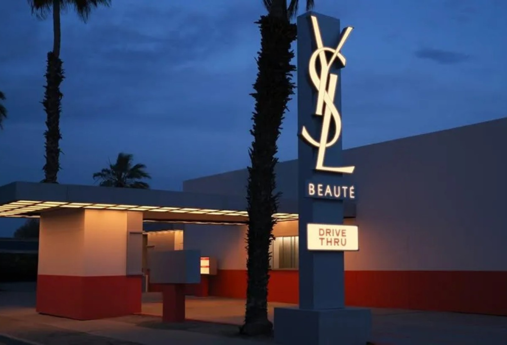 YSL Beauty je svojo puščavsko prisotnost zapakiral v enega najbolj vizualno izdelanih dogodkov vikenda. Njegov »Desert Drive-Thru« je stavil na estetiko ameriške obcestne nostalgije, a jo prevedel v lepotno prizorišče pod odprtim nebom. Kot je poročal Vogue, je bil prostor zasnovan okoli stiliziranega »drive-thru« motiva, z retro avtomobilom kot enim osrednjih fotoelementov, ob njem pa so se odvijale lepotne aktivacije, glasbeni nastop in druženje ob klasični ameriški »comfort food« ponudbi.