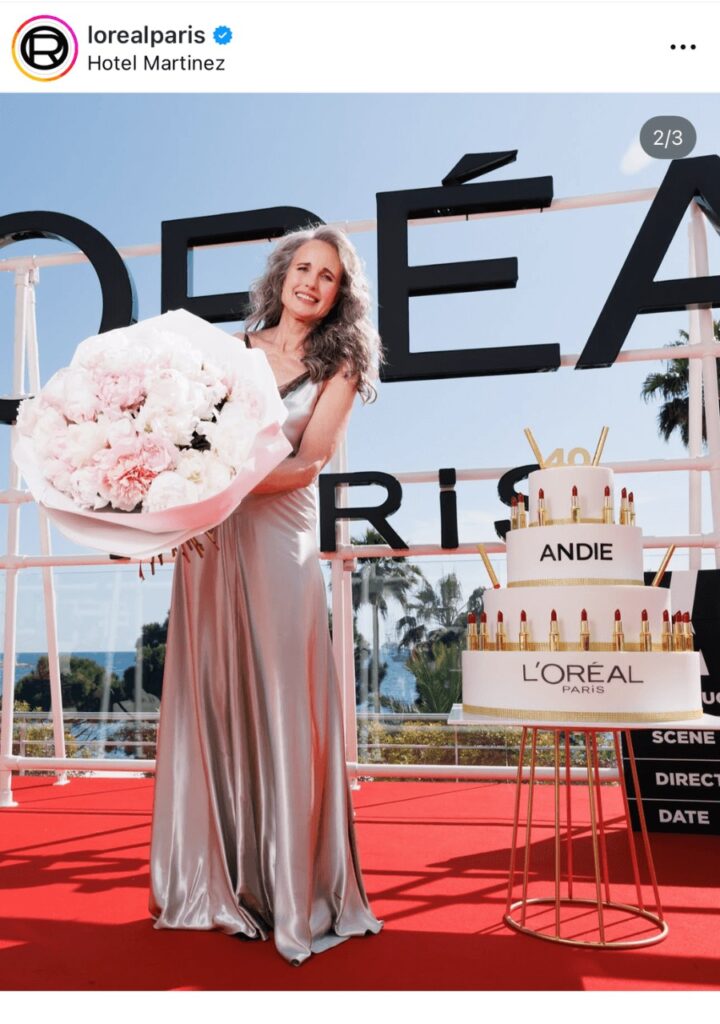 Na 78. filmskem festivalu v Cannesu leta 2025 je L’Oréal Paris ponovno potrdil svoj status ključnega partnerja dogodka, ki že od leta 1997 s svojo prisotnostjo oblikuje rdečo preprogo in spodbuja žensko moč v filmski industriji. Letos je blagovna znamka obeležila pomembna jubileja svojih ambasadork: 20 let sodelovanja z Evo Longorio in 40 let z Andie MacDowell, kar je poudarilo dolgoletno zavezanost L’Oréala k podpori žensk v svetu filma.