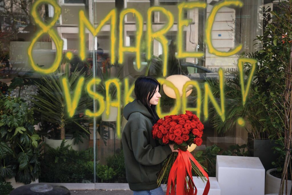 Ob letošnjem mednarodnem dnevu žensk se je na pročelju cvetličarne pojavil ogromen grafit. Ne, ni bil vandalizem, ampak sta ga Žiga in Ajk na izložbo narisala kar sama, saj ima napis veliko sporočilno vrednost. Zagovarjata načelo, da je 8. marec vsak dan in da se je za spoštovanje in pravice žensk treba boriti vsak dan v letu. In ne samo 8. marca. »Napis, grafit, biti drugačen, podirati meje, biti izzivalen. Izstop iz konvencionalnih okvirjev. To je Tista cvetličarna,« pravi Breskvar Tiller.