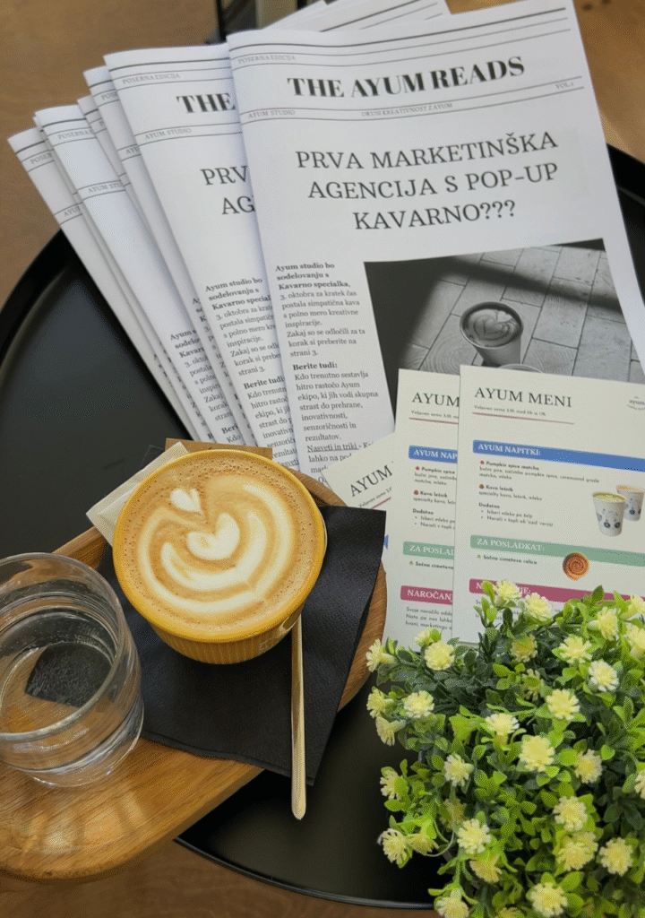 Kaj se zgodi, ko se kreativna agencija in kavarna odločita združiti svetove? Nastane projekt, ki zadiši po sveže mleti kavi in idejah. Ayum Studio je v sodelovanju s Kavarno Specialka ustvaril pop-up izkušnjo Ayum Coffee House, ki ni bila le kavarna, bila je živa demonstracija tega, kar v marketingu imenujemo experiential marketing.